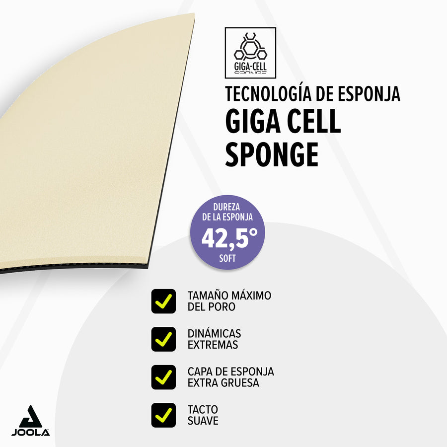 - Innovative sponge: The GIGA CELL sponge practically explodes at the moment of ball contact, delivering extreme dynamism and impressive sound
