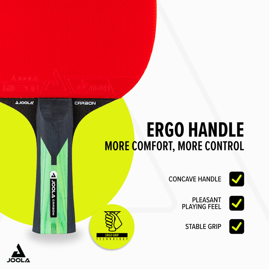 The JOOLA Mega Carbon Table Tennis Racket offers the perfect combination of power, precision, and control. The carbon fiber reinforcement and ITTF-approved UPP rubbers enable you to use your stroke techniques variably and effectively while minimizing vibrations. This racket is ideal for ambitious players aiming to maximise their competitive performance and dominate their opponents. Experience the outstanding performance of the JOOLA Mega Carbon and take your table tennis game to the next level!