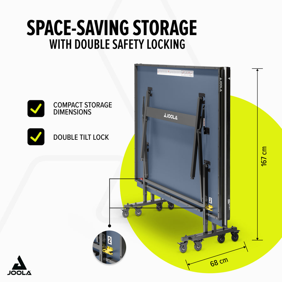 The JOOLA INSIDE 15 table tennis table combines outstanding playing features with stylish design and practical functions. Whether for recreational games or intensive training – the consistent ball bounce surface and easy handling make it the perfect choice for table tennis enthusiasts. The quick assembly and included safety features ensure worry-free playing enjoyment from the very start.