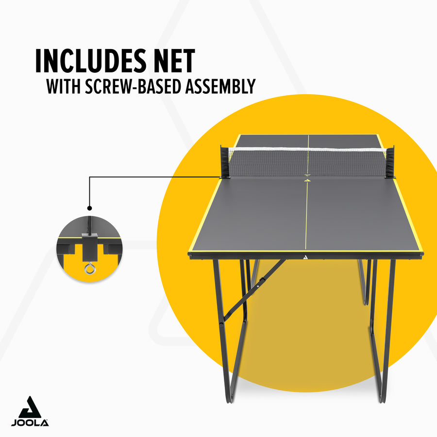 Experience playing fun in a small space with the JOOLA Midsize table tennis table – the ideal choice for small rooms and quick gameplay!