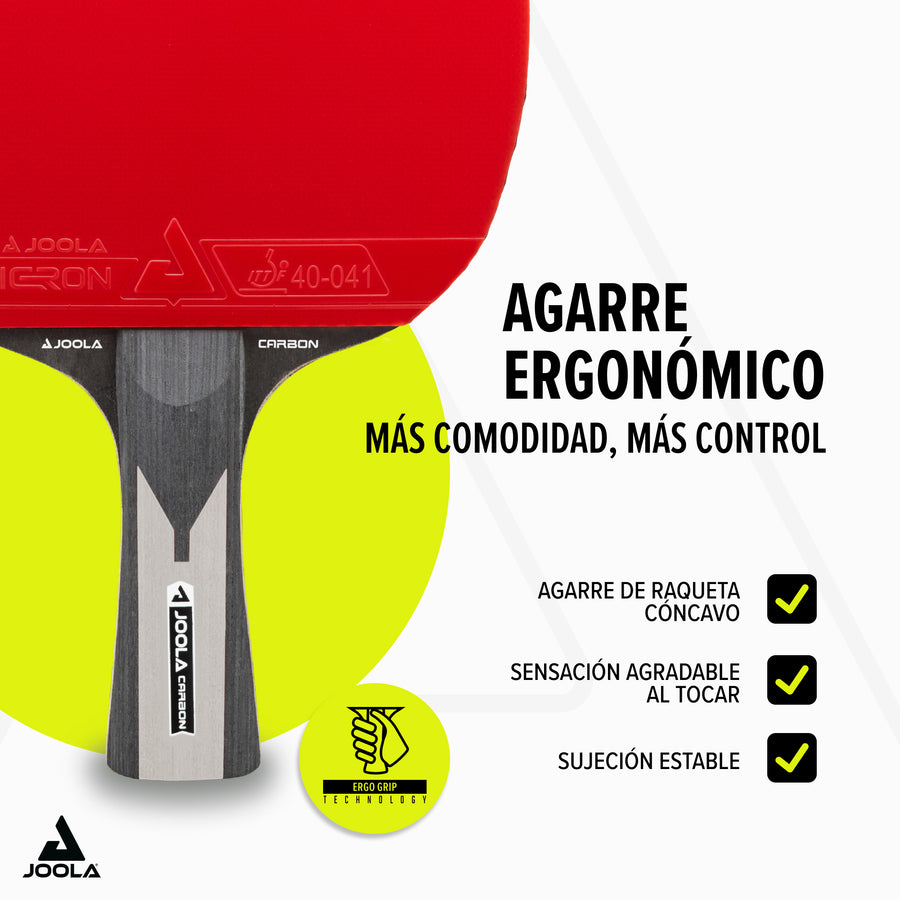La JOOLA Carbon X Pro pala de tenis de mesa te ofrece la combinación perfecta de dinámica, efecto y velocidad. Con el tejido de carbono integrado y las gomas Micron aprobadas por la ITTF, podrás ejecutar golpes potentes y precisos, elevando tu juego a un nuevo nivel. Ideal para jugadores ambiciosos que quieren maximizar su rendimiento y dominar a sus oponentes. ¡Experimenta el rendimiento extraordinario de la JOOLA Carbon X Pro y revoluciona tu juego de tenis de mesa!