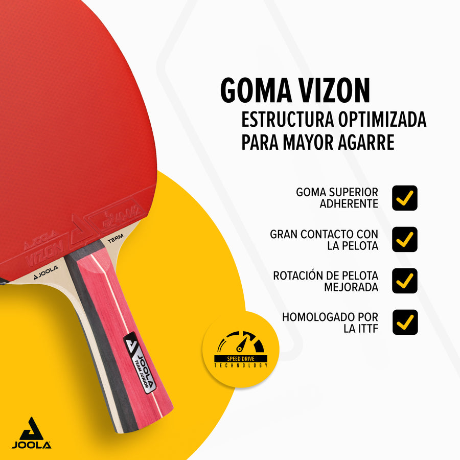 La pala de tenis de mesa JOOLA Team Junior está especialmente diseñada para jugadores jóvenes y les ofrece la base ideal para iniciarse en el tenis de mesa. Con calidad de 3 estrellas y las gomas VIZON de alta calidad, esta pala está perfectamente adaptada a las necesidades de los niños.