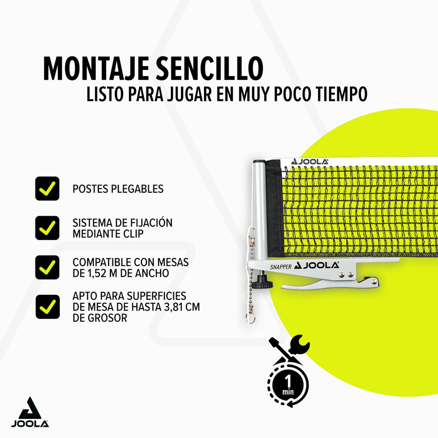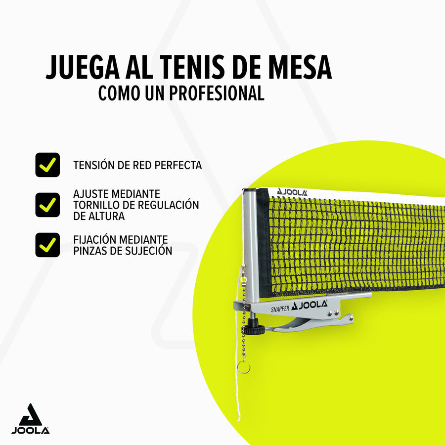 Disfruta de un juego sencillo y fiable con el JOOLA Red Snapper – el juego de red ideal para jugadores exigentes de tenis de mesa.