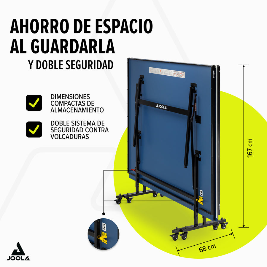 - Mitades plegables: La mesa se puede maniobrar fácilmente en modo de juego individual con sus dos mitades plegables separadas, perfecta para entrenamientos en solitario.