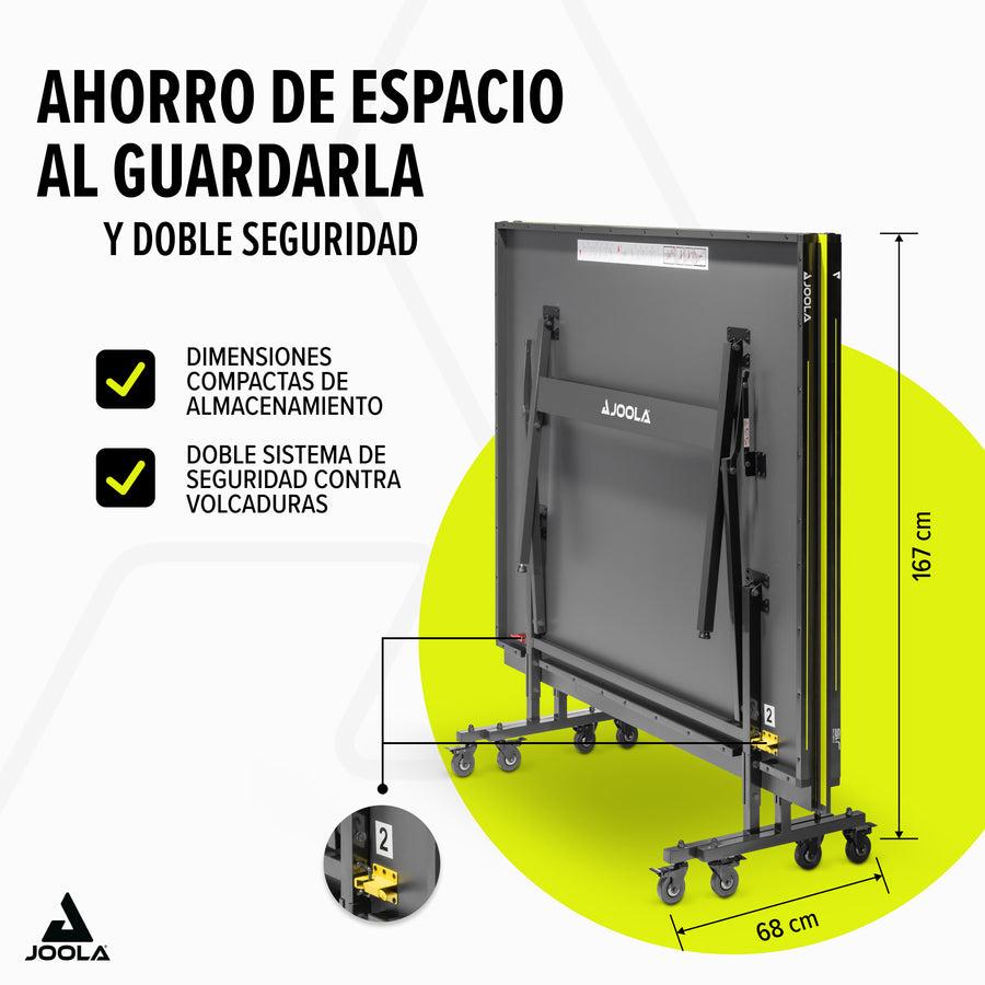 - Doble sistema antivuelco: Para mayor seguridad, el doble sistema antivuelco evita que la mesa se vuelque accidentalmente.