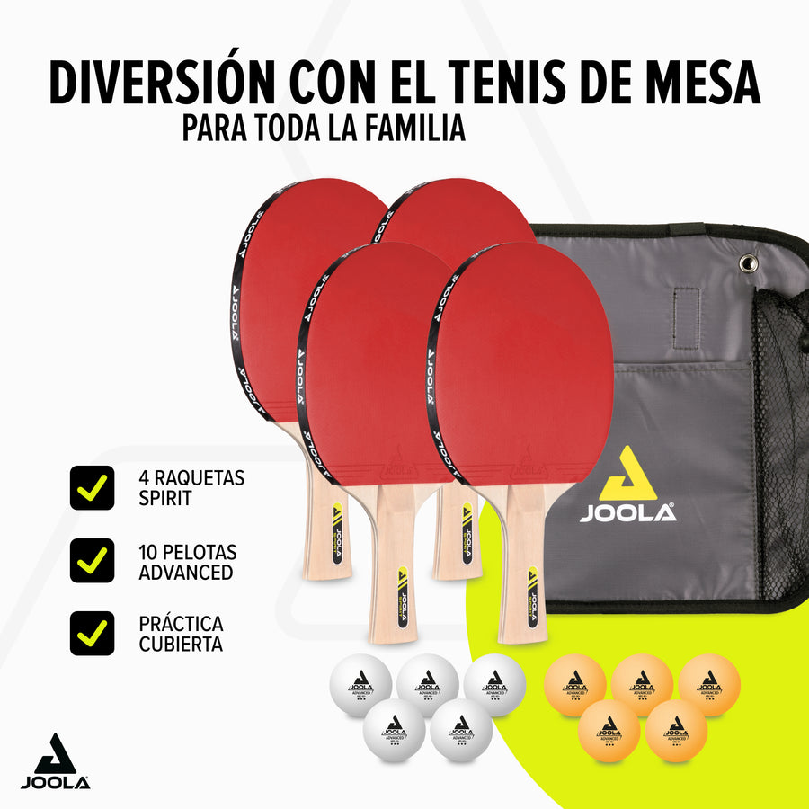 - Set completo: El set FAMILY incluye 4 paletas JOOLA SPIRIT y 5 pelotas blancas y 5 naranjas, para que puedas empezar a jugar de inmediato.
